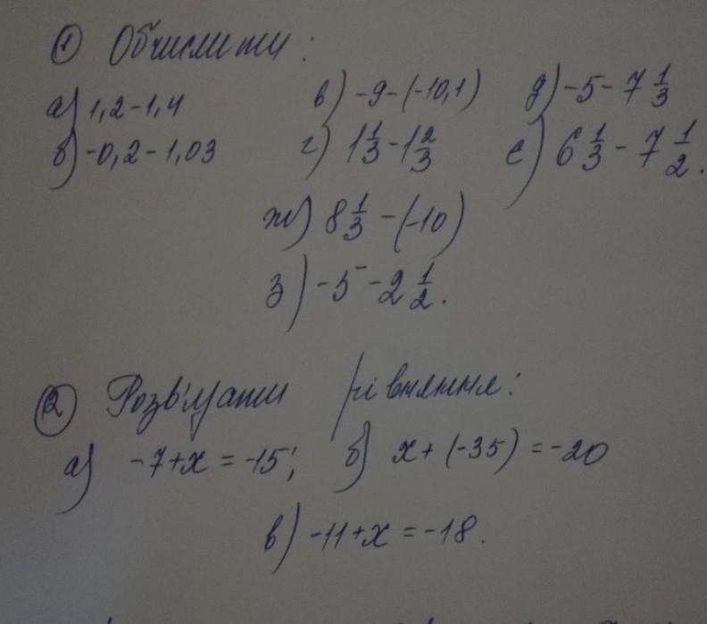 е) 6 1/3 - 7 1/2= 6 2/6 - 7 3/6= - 1 1/6
