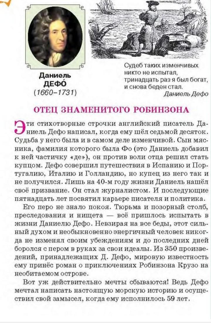 Краткая биография. Даниэль Дефо — английский писатель, публицист, журналист, основоположник экономической журналистики, популяризатор жанра романа в Великобритании, автор романа о Робинзоне Крузо — родился примерно в 1660 г. недалеко от английской столицы, в Криплгейте.