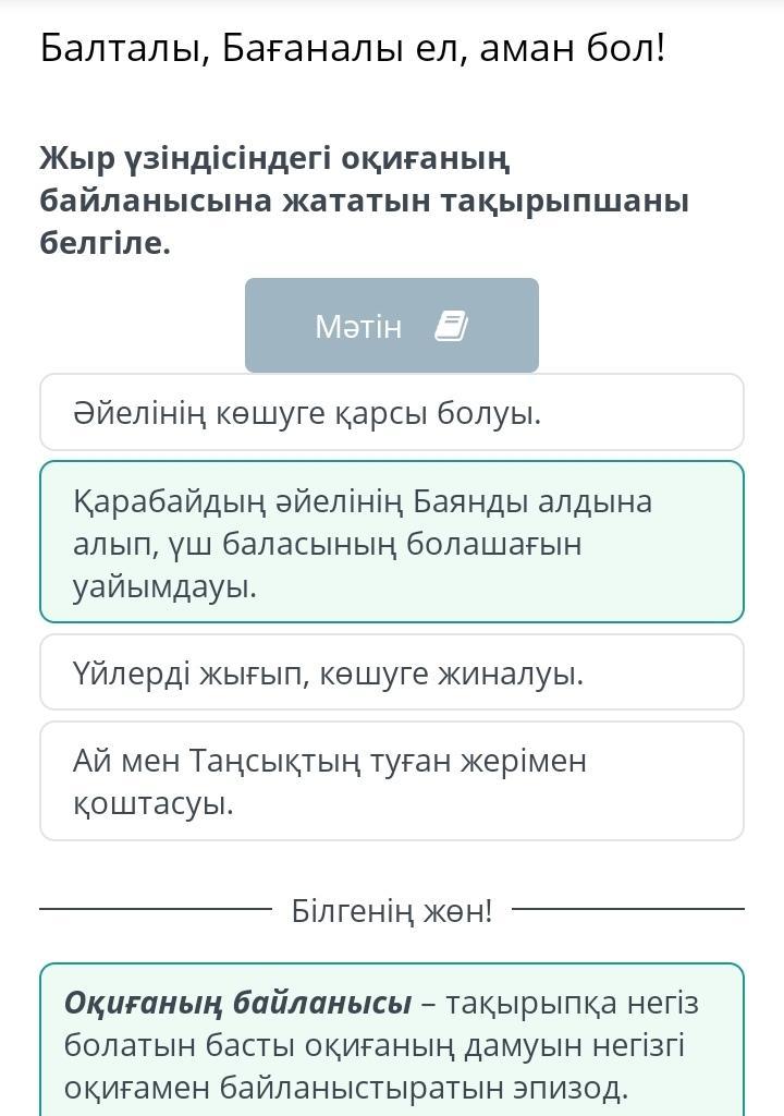 Жыр үзіндісіндегі оқиғаның байланысына жататын тақырыпшаны белгіле.
