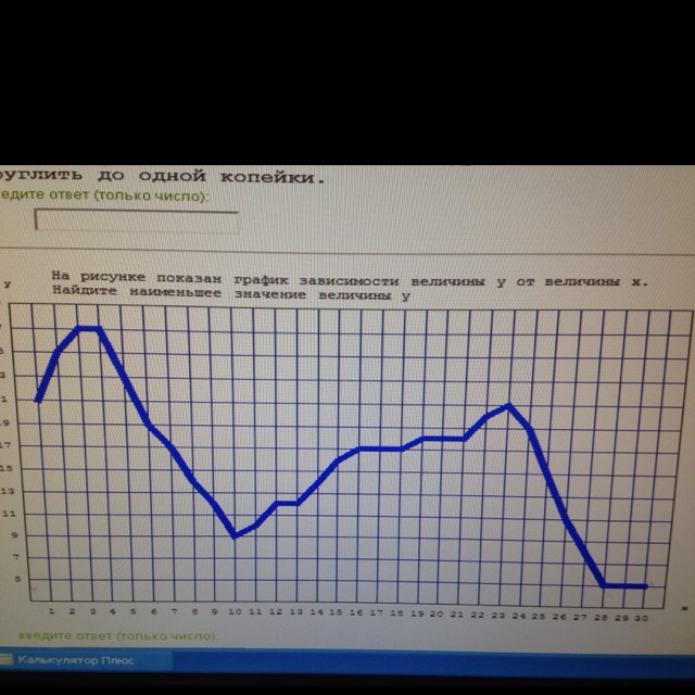 5 - очевидно же. Вертикальная ось и есть ось у. Минимальное значение - самое нижнее, которого достигает график.