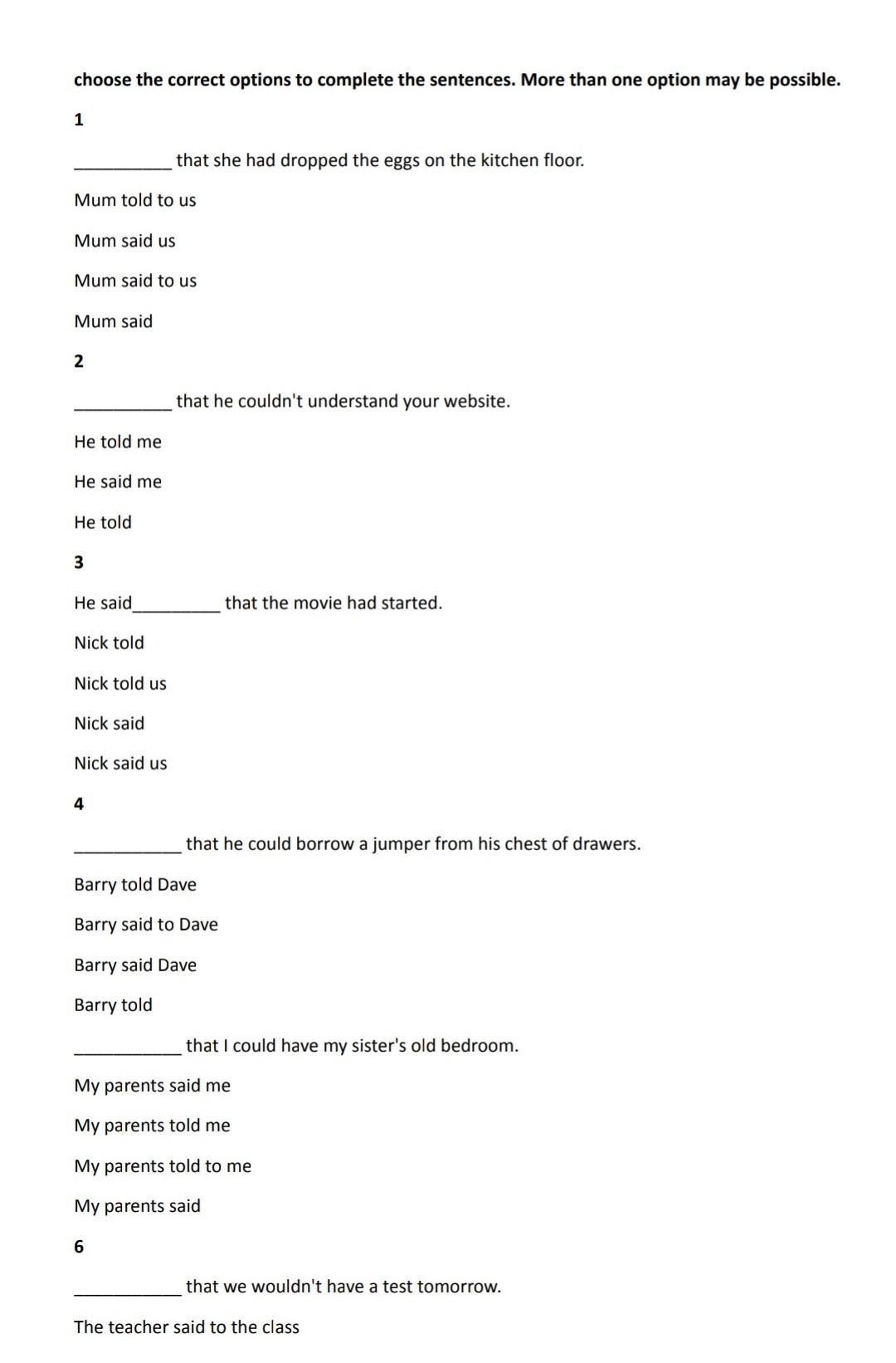 2. he told