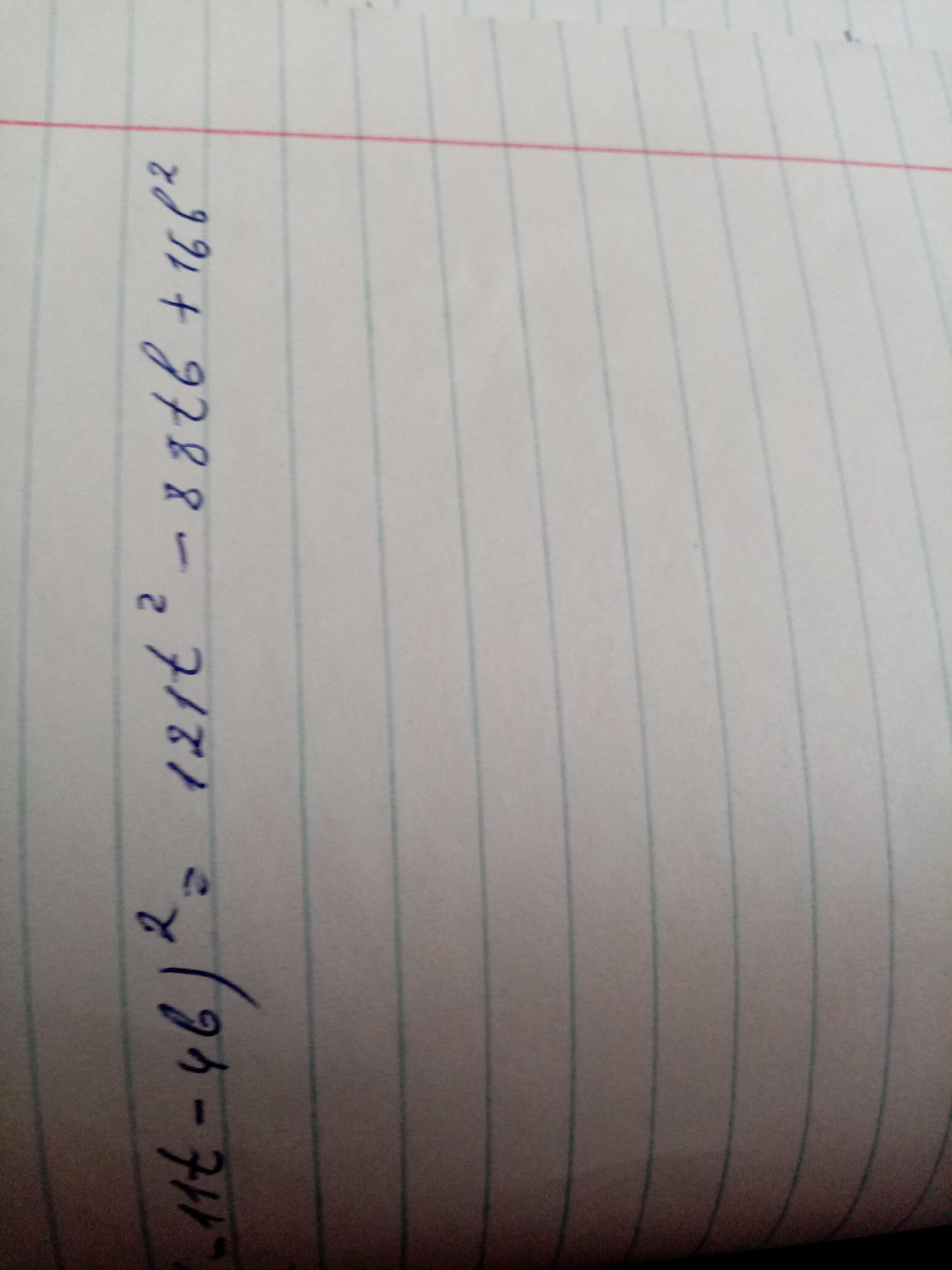 Раскрой скобки и вставь пропущенные математические знаки. (-11t-4b)^2=(?)121t^2(?)88tb(?)16b^2