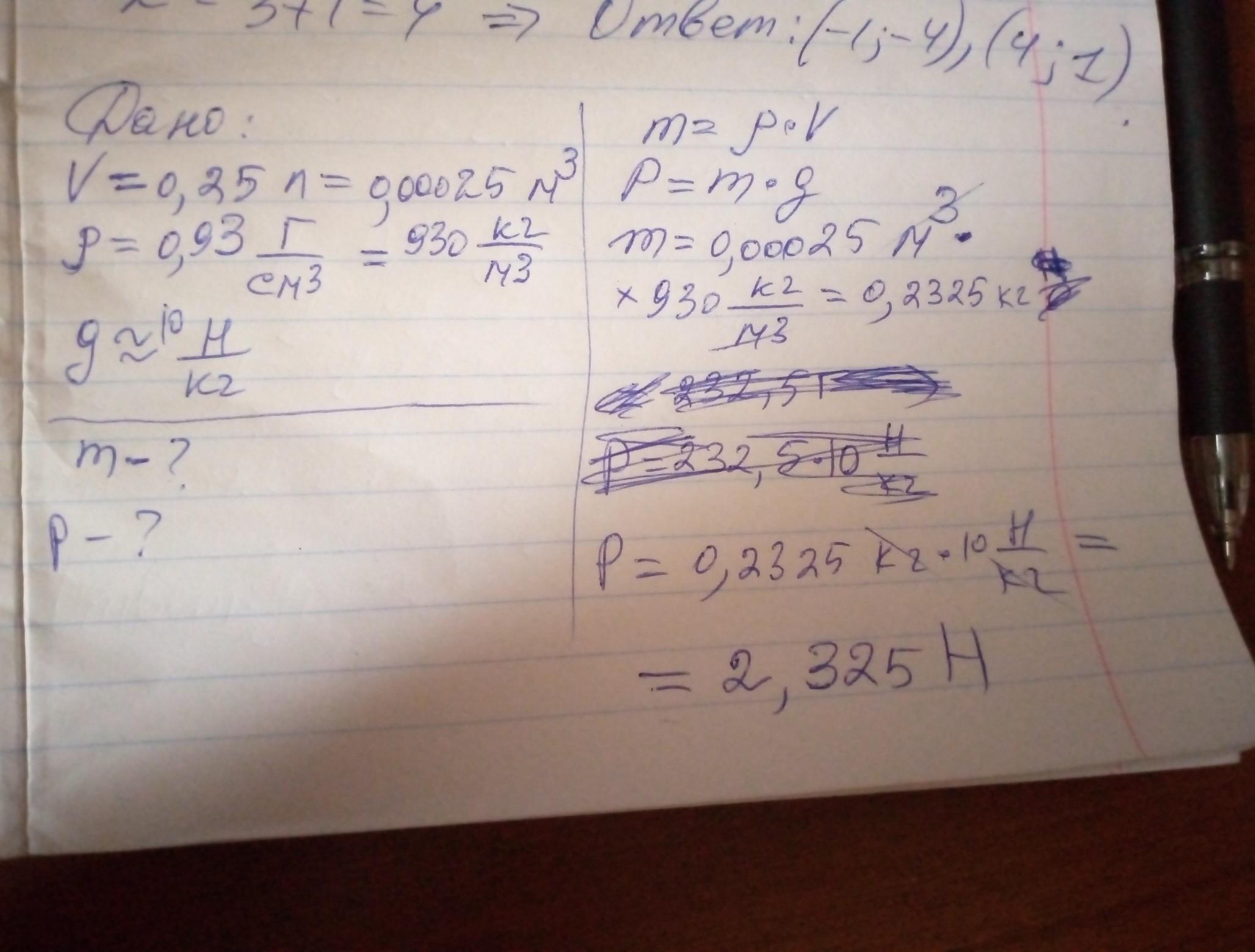 ρ=m/V => m = ρ*V = 900*2,5*10⁻⁴=0,225 кг
