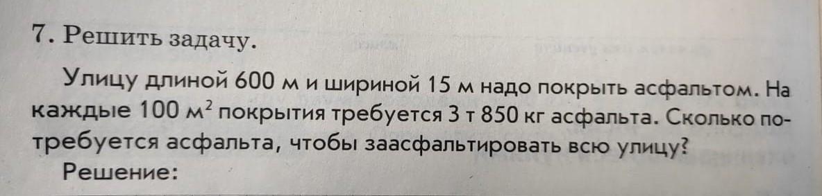 Задача не сложная,нам сначало нужно узнать длину асфальта всего, тоестьумножить длину на ширину, далее просто умножить длину асфальта на все асфальта в 100 м2.надеюсь всё понятно, рада была помоч)