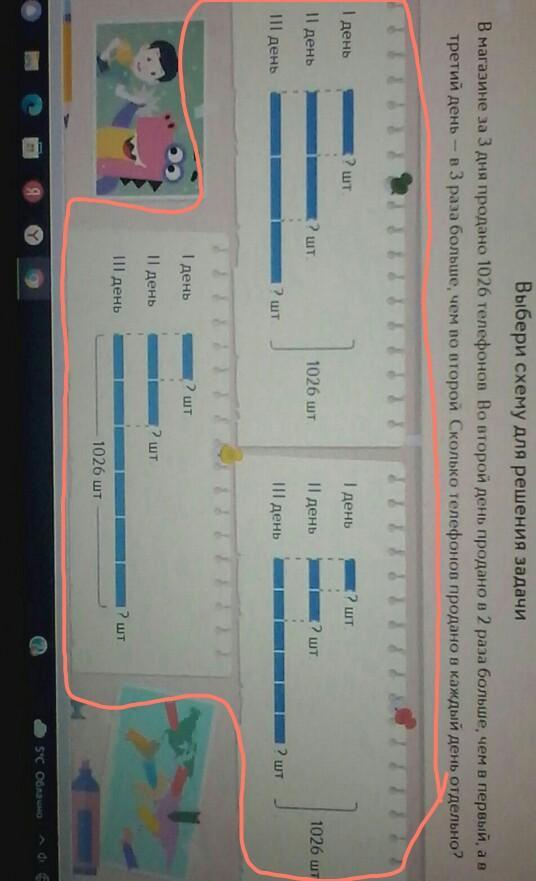 в магазине за 3 дня продано s1026 телефонов во второй день продано в 2 раза больше чем в первый а в третий день в 3 раза больше чем во второй Сколько телефонов продано в каждый день Отдельно