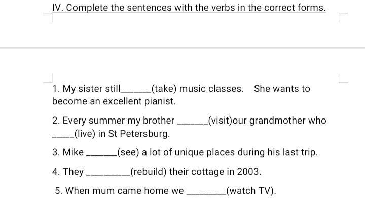 Ответ:1 listening 2 visiting 3 see 4 rebuilding 5 watching tv