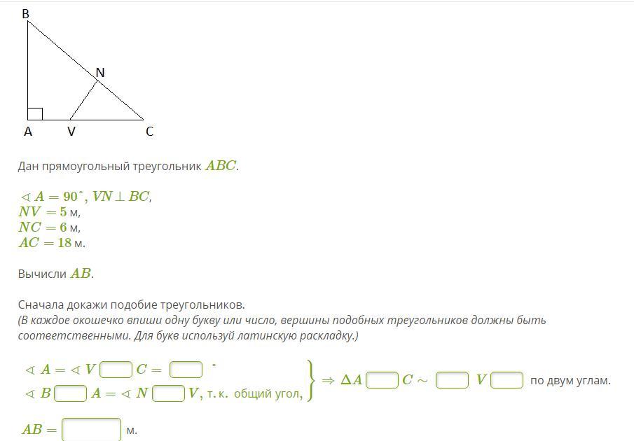 /A=/VNC=90 => треугABC~треугNVC(подобен)