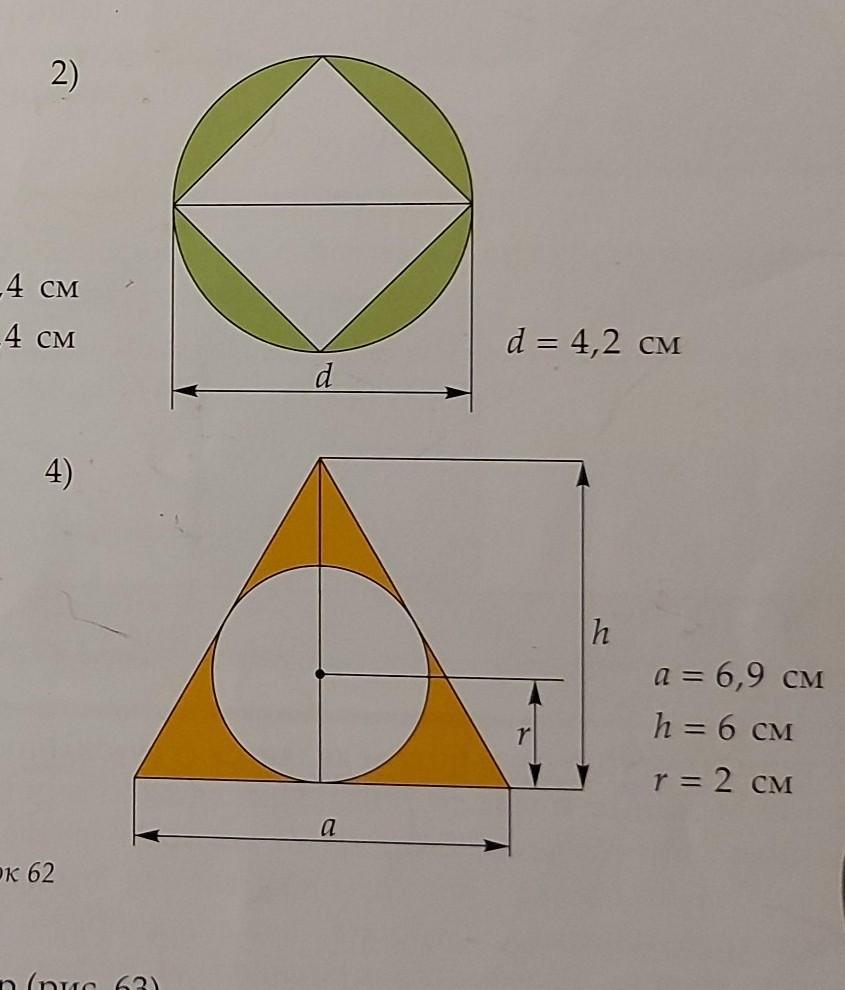 Sф = Sтреугольника - S круга = 20.7 - 12.56 см² = 8,14 см² или 20.7 - 4*π см²
