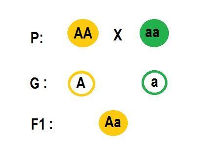 Согласно первому закону Менделя ( смотрите вложени) при моногибридном скрещивании у гибридов первого поколения проявляется доминантный признак. Поколение единообразно по фенотипу и генотипу. Значит генотипы родителей АА и аа, потомство Аа