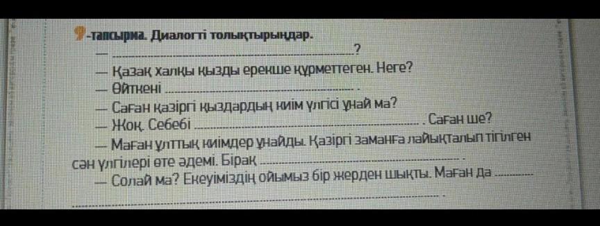 –Маған ұлттық киімдер ұнайды. Қазіргі заманға лайықталып тігілген сән үлгілері өте әдемі. Бірақ бұрынғы ата бабаларымыз киген киімдер әдемірек секілді.