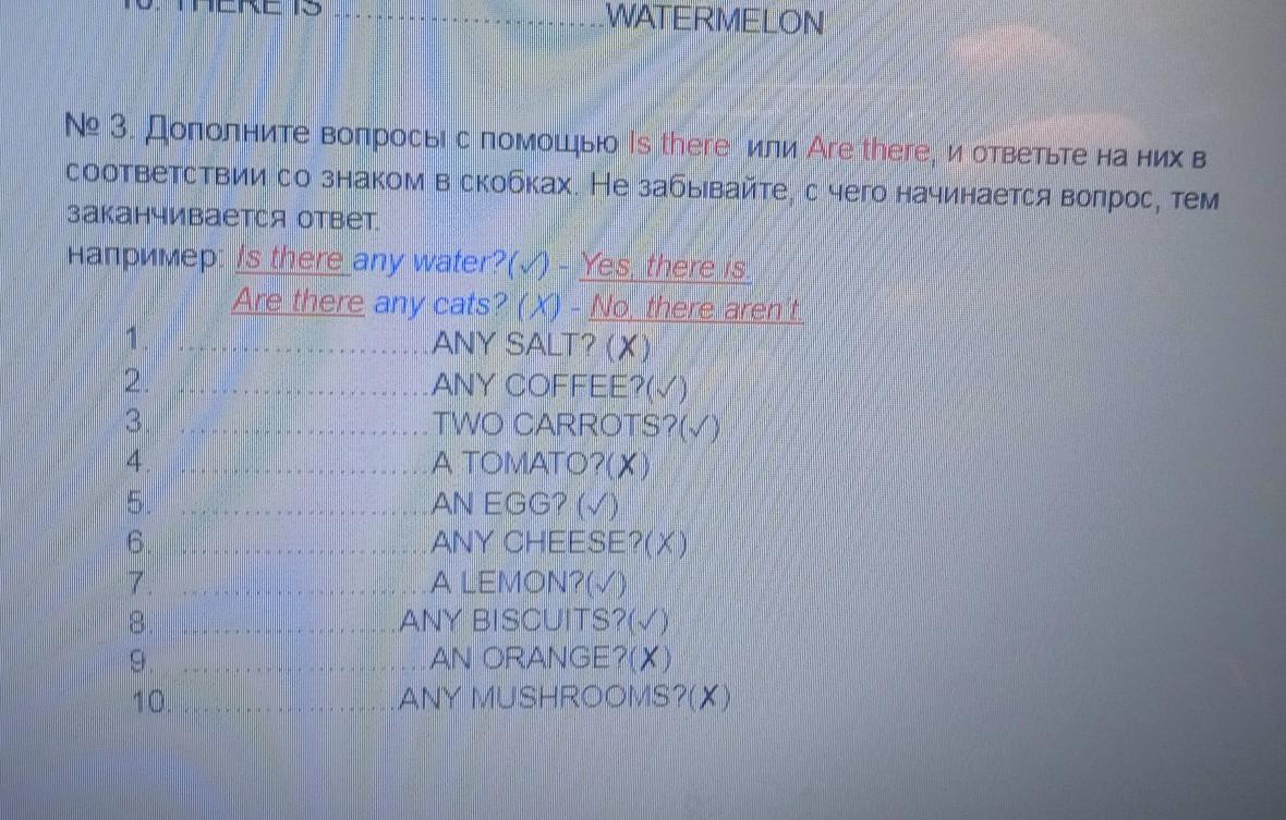 1) Is there any salt? - No, there is not 2) Is there any coffee? - Yes, there is 3) Are there two carrots? Yes, there are 4) Is there any a tomato? - No, there is not 5) Is there any egg? Yes, there is 6) Is there any cheese? No, there is not 7) Is there any lemon ? Yes, there is 8) Are there any biscuits? Yes, there are 9) Is there an orenge? No, there is not 10) Are there any mushrooms? No, there are not