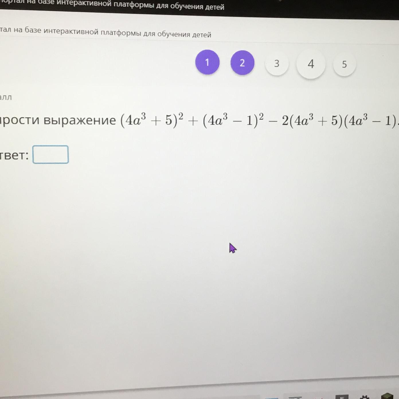 значит=(4a^3+5-4a^3+1)^2=6^2=32 Тут я немного сомневаюсь, ведь нам не ответ был нужен