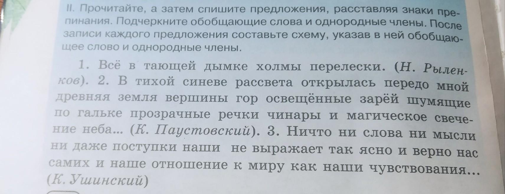 2)В тихой синеве рассвета открылась передо мной древняя земля вершины гор , освещенные зарёй , шумящие по гальке прозрачные речки , чинары и магическое свечение неба ....(3)Ничто ,не слова , ни мысли , ни даже поступки наши не выражает так ясно и верно нас самих ,и наше отношение к миру как наши чувствования