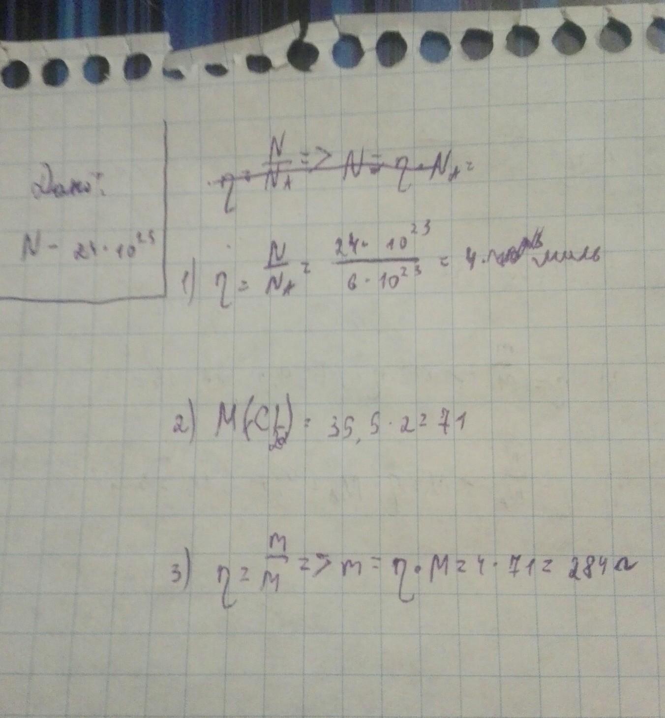 Найти массу 24 умножить на 10 в 23 степени молекул хлора