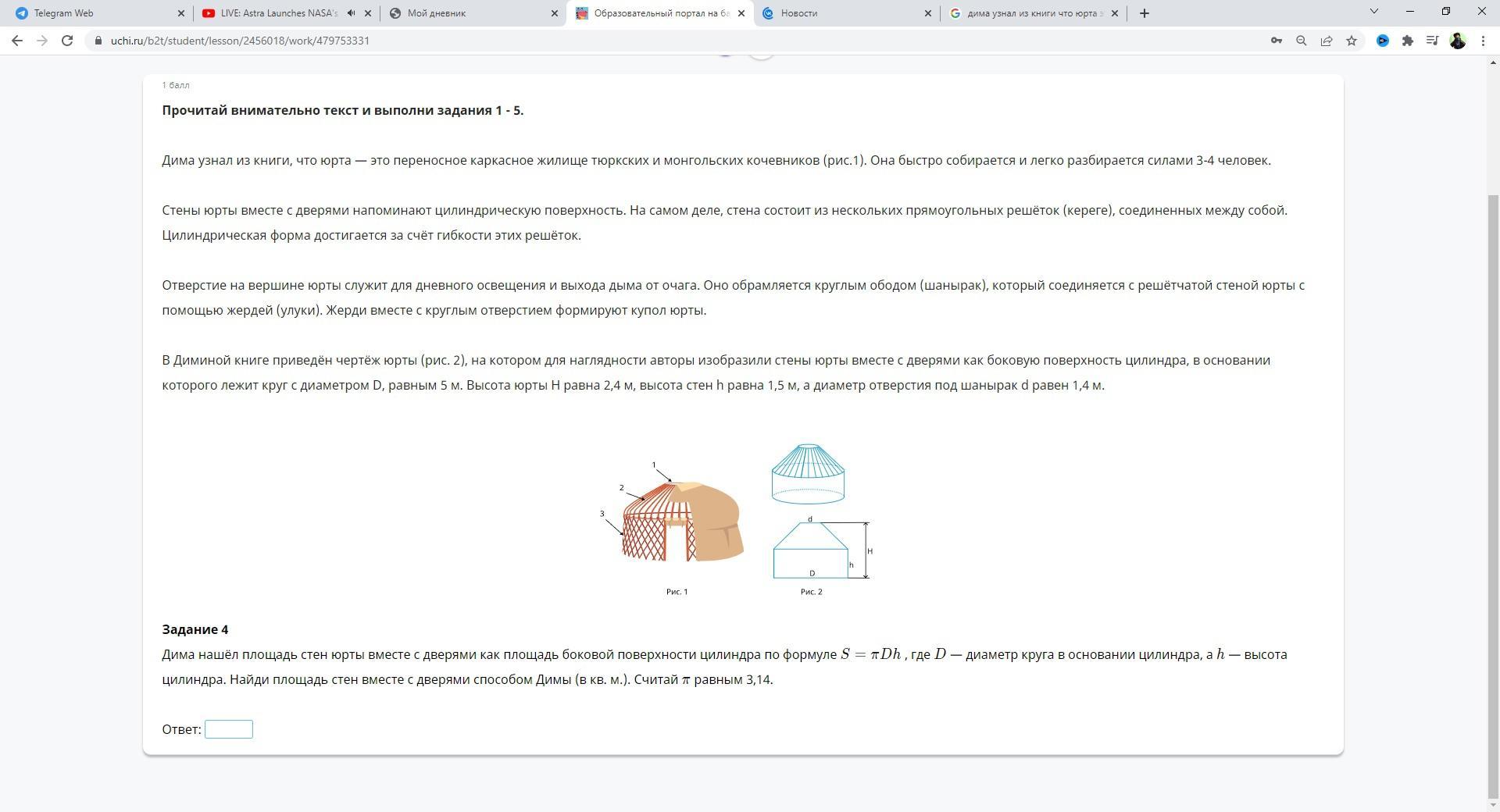 D = 5, h = 1,5, π = 3,14
