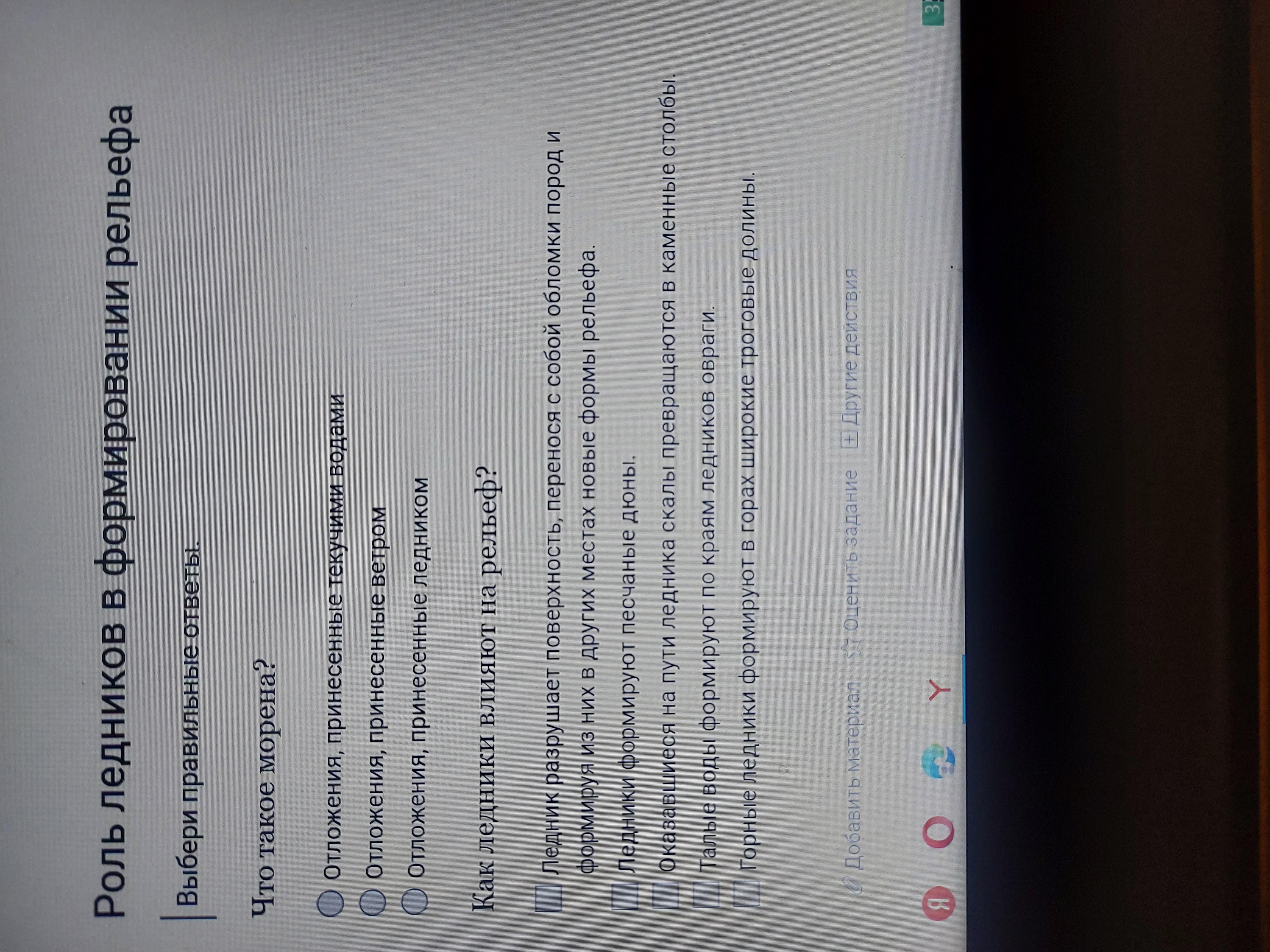 Геологическая деятельность ледника сводилась к следующему: механическое разрушение пород — образование обломочного материала; перемещение материала — по мере продвижения ледника; аккумуляция материала — формирование отложений.