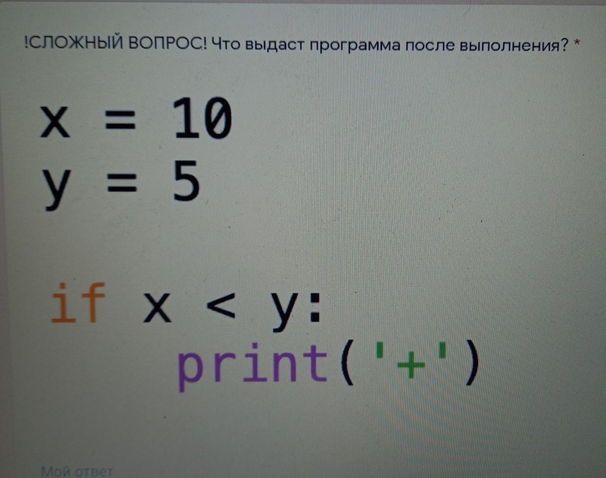 Если же наоборот тоесть "y < x" то напечатает "True"