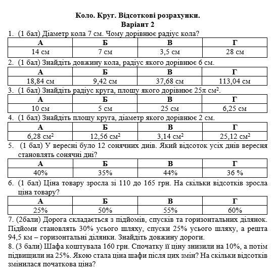 1.В (d=2r, r=d/2=7:2=3,5 см)