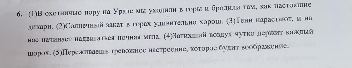3)Мгла начинает надвигаться (предложение3) 4)Держит шорох (предложение4) 5)Будит воображение (предложение5)