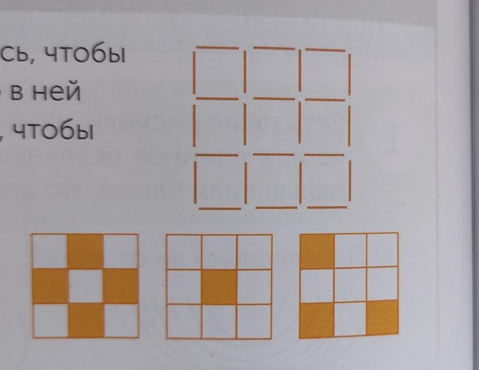 а) Сколько палочек понадобилось, чтобы сложить такую фигуру? Сколько в ней квадратов? Убери 4 палочки так, чтобы осталось только 5 квадратов.