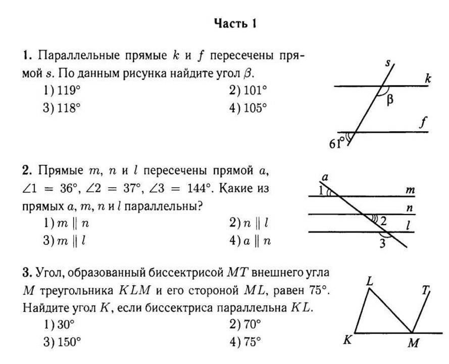 Возьмём смежный угол с углом 61°(любой, либо сверху, либо справа). Как мы знаем, сумма смежных углов равна 180°. Значит угол, смежный с углом 61° =180°-61°=119°. Мы получаем либо накрест лежащий, либо соответственный угол, углу В. А как мы знаем, при параллельных прямых и секущей соответственные и накрест лежащие углы равны. Отсюда следует, что угол В=119°