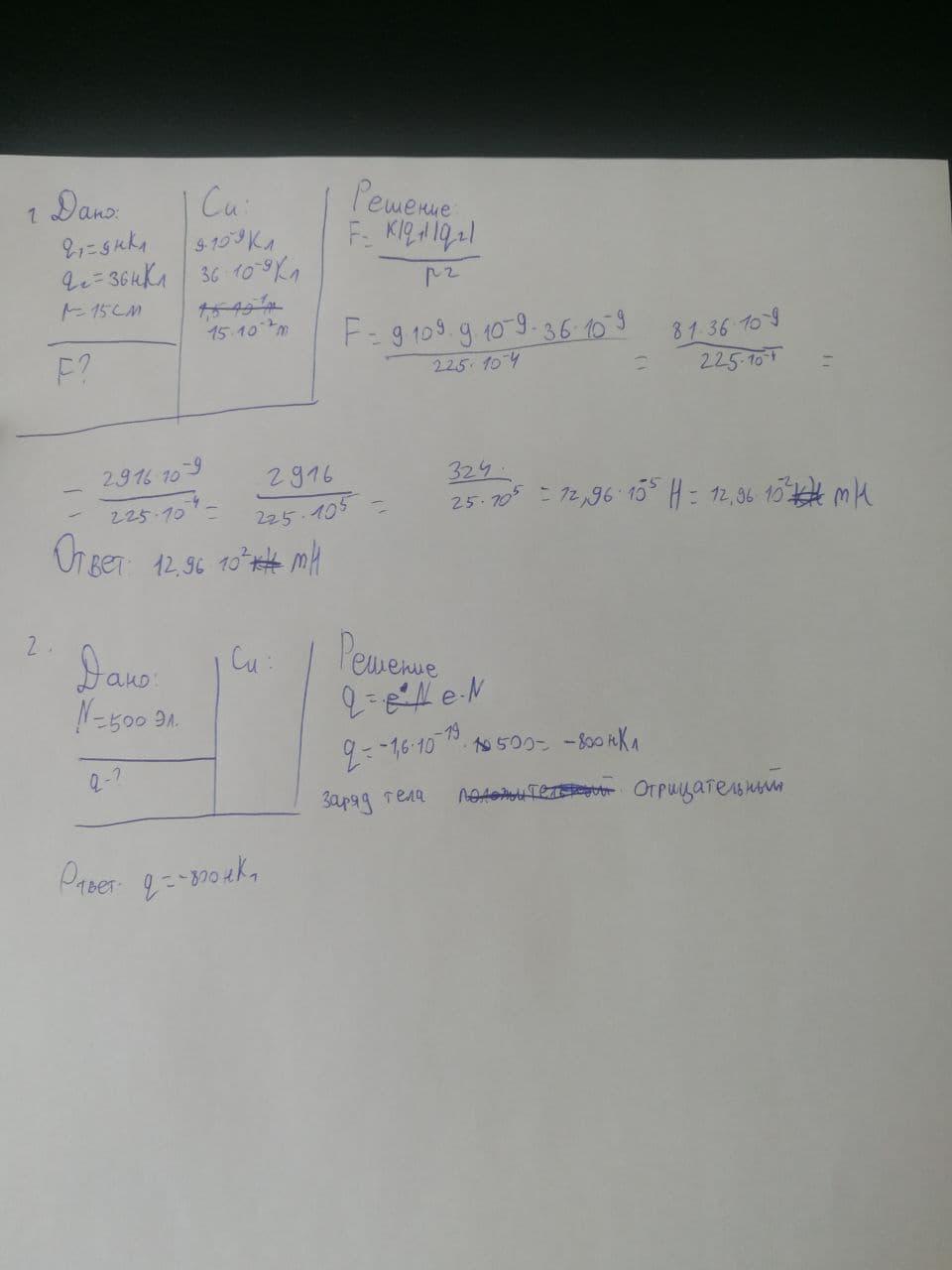 1.Два заряда 9 и 36 нКл находятся на расстоянии 15 см друг от друга. Найти силу взаимодействия заряда.