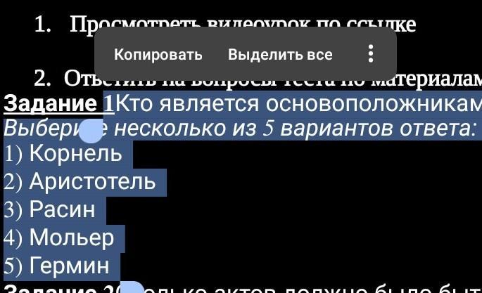 1Кто является основоположниками классицизма? Выберите несколько из 5 вариантов ответа: 1) Корнель 2) Аристотель 3) Расин 4) Мольер 5) Гермин