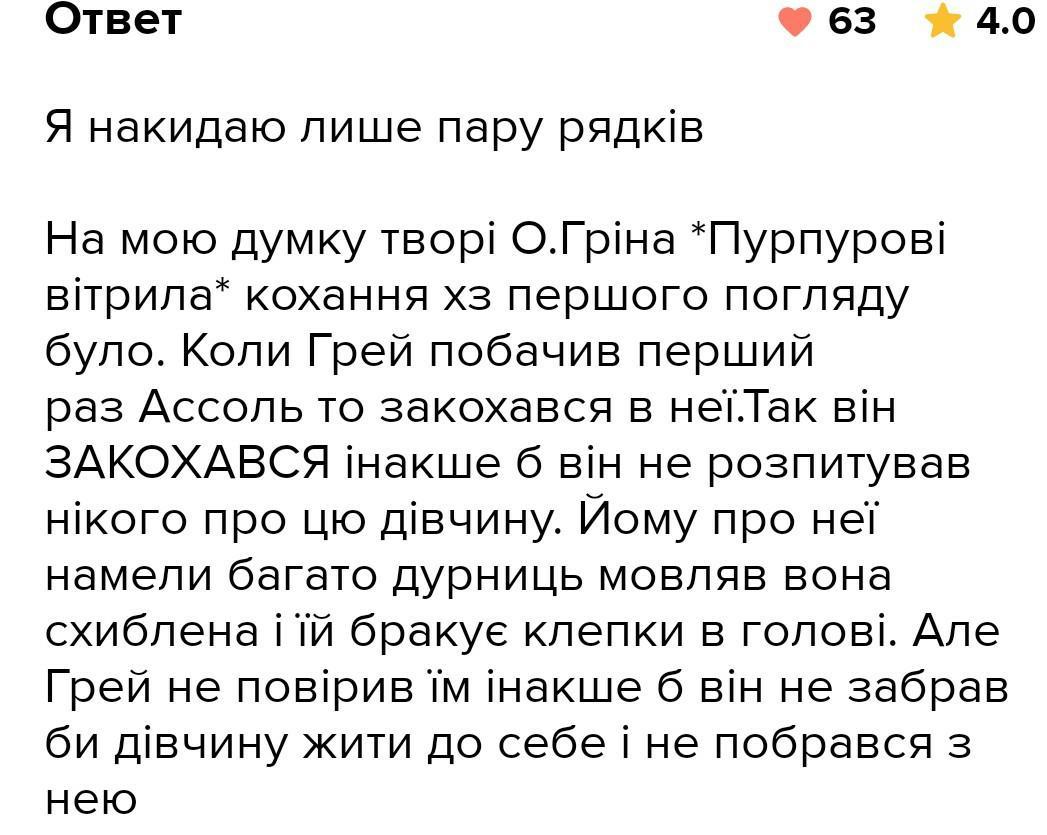 твір роздум на тему чи буває кохання с першого погляду. до тексту пурпурові вітрила. до 9 30 срочно