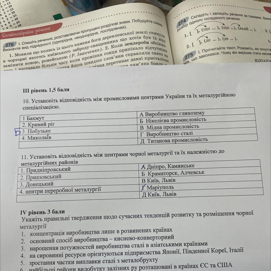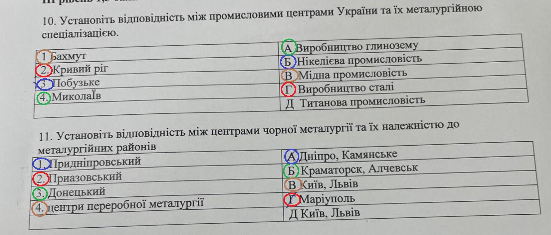 - 10 Установите соответствие между промышленными центрами Украины и их металлургической специализацией.