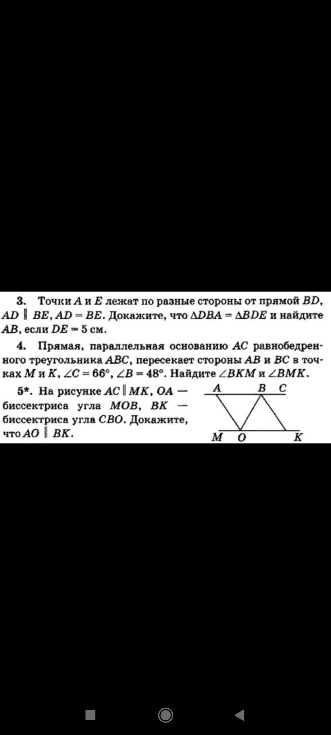 Тр-к DBA=тр-ку ВDE по двум сторонам и углу между ними (по 1 признаку), значит соответствующие элементы равны, следовательно, АВ=DE=5 cм