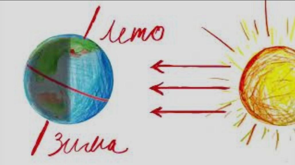 Навпаки коли зима на північній півкулі це означає що площа північної поверхні повернутої до сонця менша ніж площа на південній півкулі повернута до сонця. Тому на півночі день коротший, а на півдні довший.