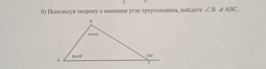 Ответ:Сумма двух внутренних углов не смежных с внешним равна градусной мере внешнего угла