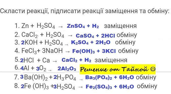 Zn +H2SO4= ZnSO4+H2 (замещения)