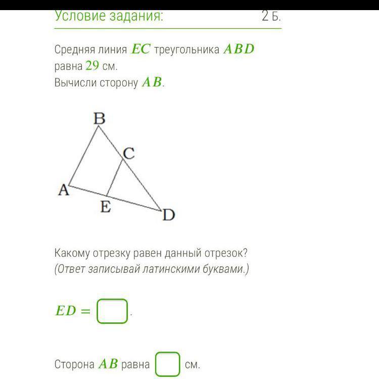 Ответ:ЕD=AE,т к Средняя линия проводится через середину двух сторон