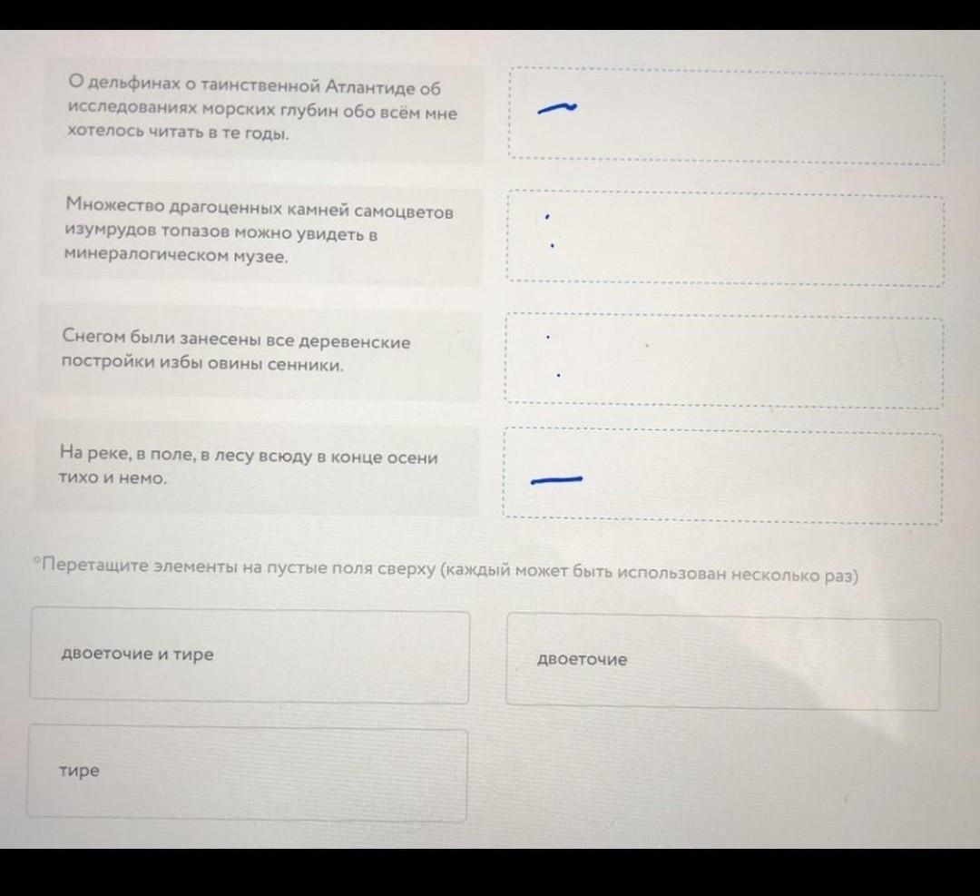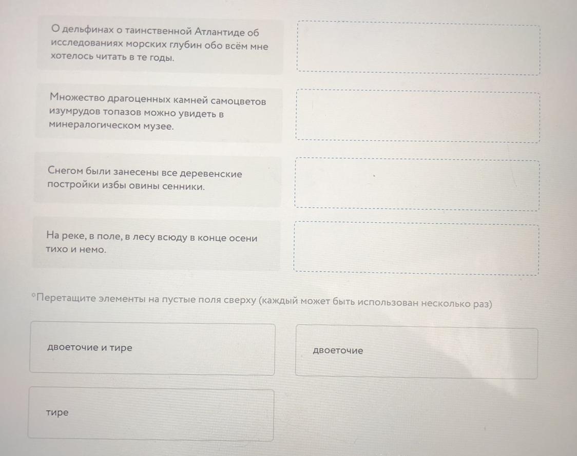 Установите соответствие между предложениями и знаками препинания при обобщающих словах (знаки препинания пропущены).