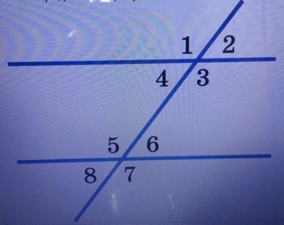 угол 4 и угол 8, угол 3 и угол 5, угол 3 и угол 7, угол 3 и угол 6, угол 4 и угол 6, угол 1 и угол 5, угол 1 и угол 7, угол 4 и угол 5 ,угол 2 и угол 8, угол - 2 и угол 6.