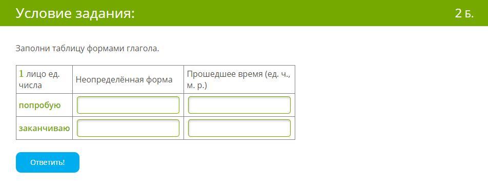 1) попробовать (инфинитив) ; попробовал (ед.ч, м.р)
