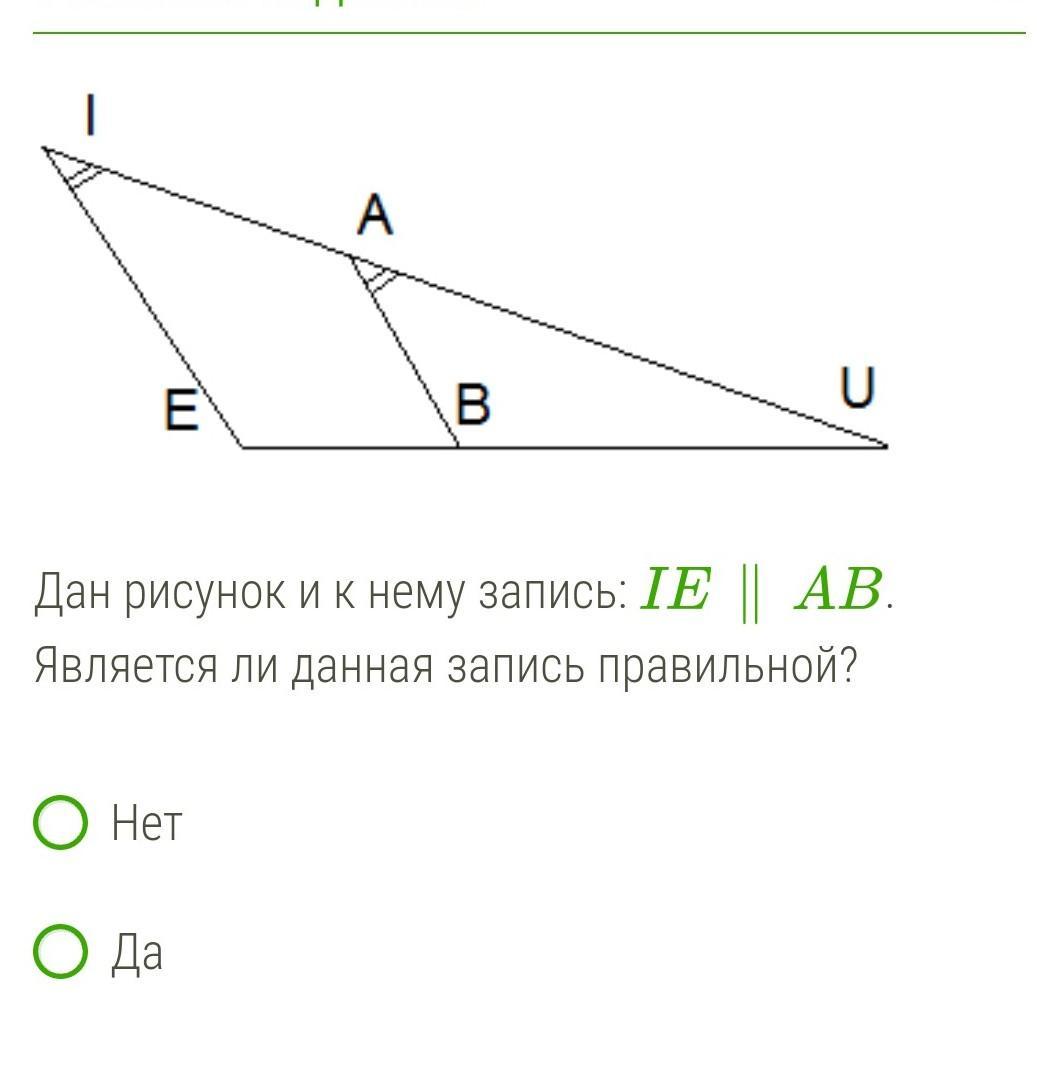 Данная запись является правильной, т. к. угол EIA = угол UAB как соответственные.