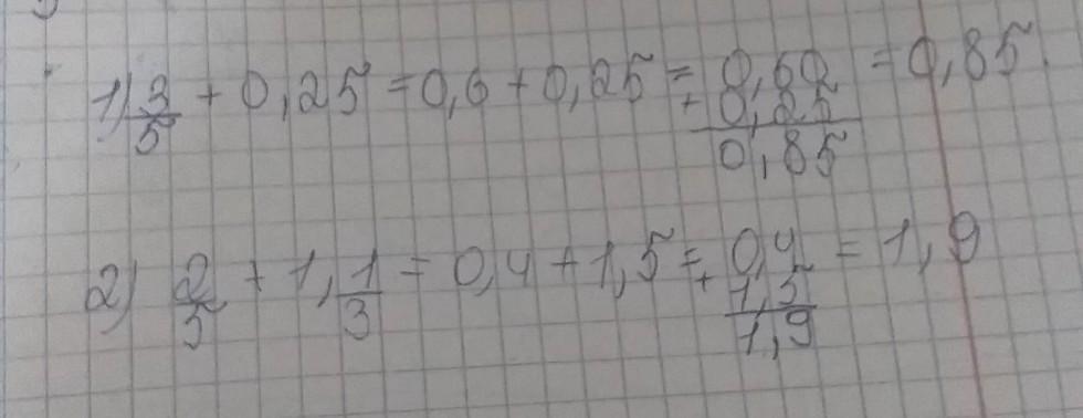 помогитеи пожалуйста 3/5+0,25 и 2/5+1 1/3