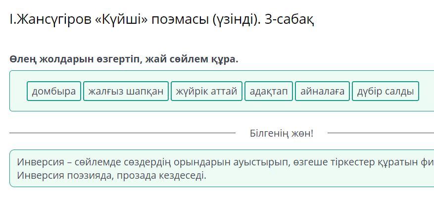 Өлең жолдарын өзгертіп, жай сөйлем құра. адақтап айналаға домбыра дүбір салды жүйрік аттай жалғыз шапқан