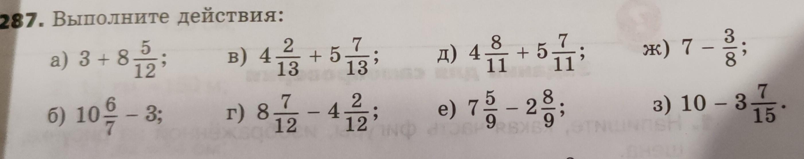 Ж) 7 - 3/8 = 6. 8/8 - 3/8 = 6. 5/8