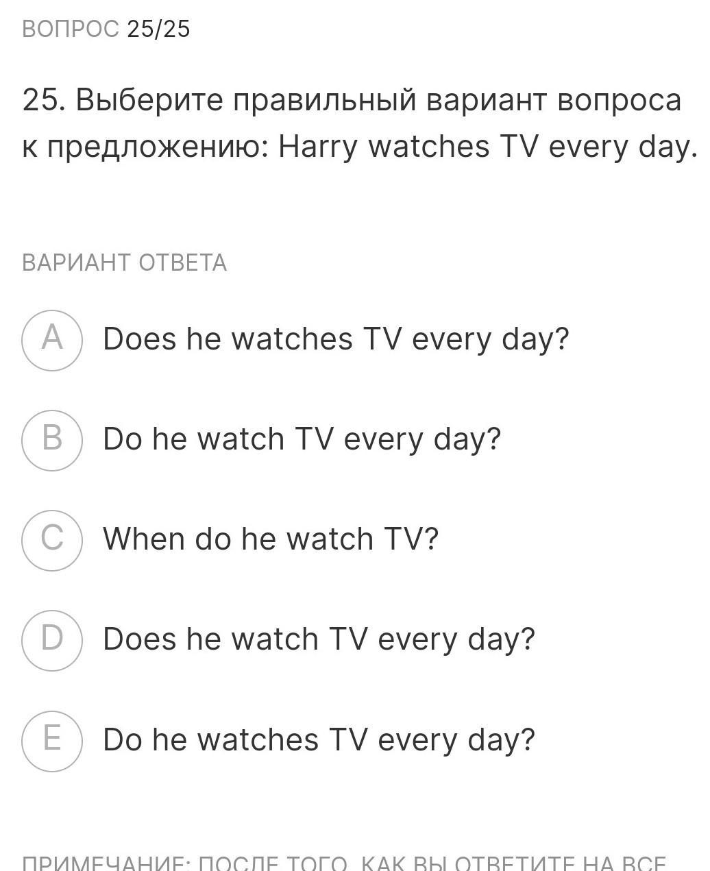 Does Harry watch TV every day? (Гарри смотрит телевизор каждый день?)