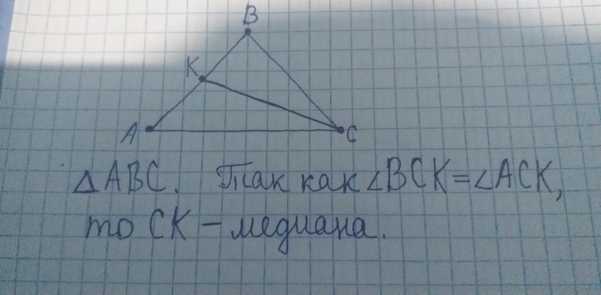 в треугольнике ABC проведен отрезок CK так что угол BCK=углу ACK как называется этот отрезок (30 баллов)