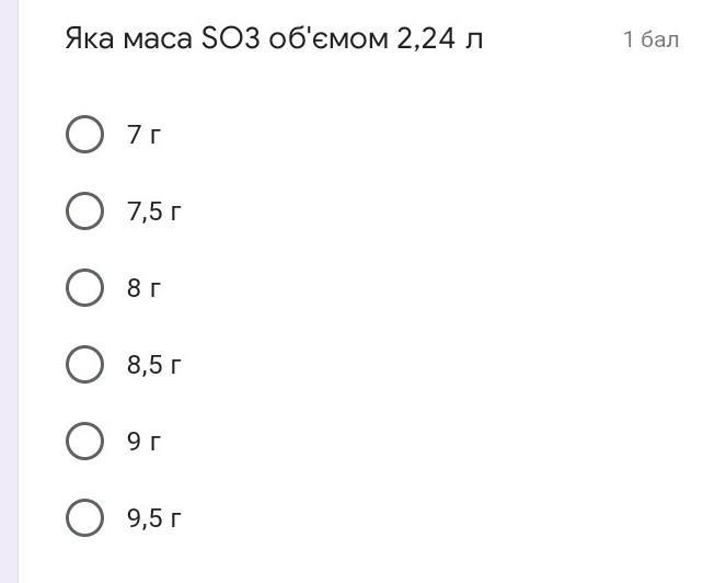 Маса SO3 обємом 2 ,24 л складає 8 г