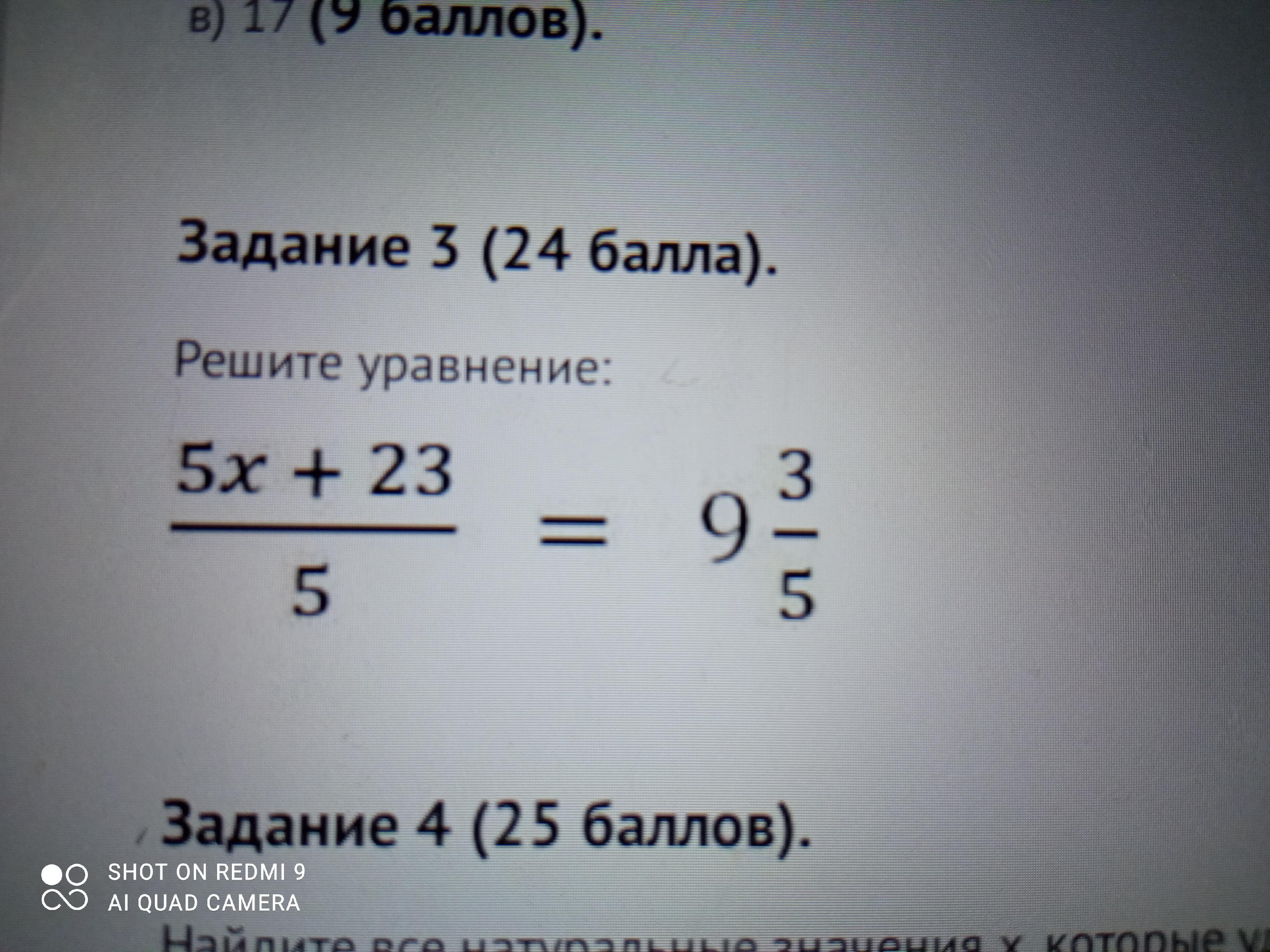 (5x+23)/5=9 3/5