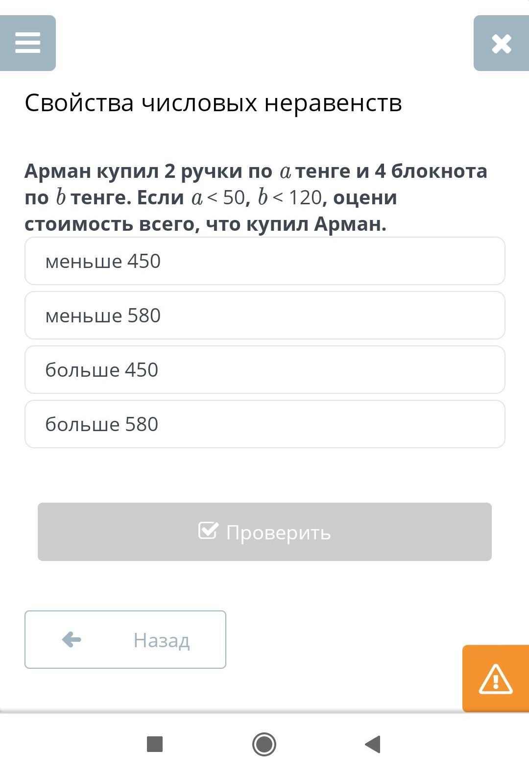 Меньше 580, потому что если взять стоимость ручки 49 Тенге и умножим на 2 ( т.к их две) получим 98 Тенге