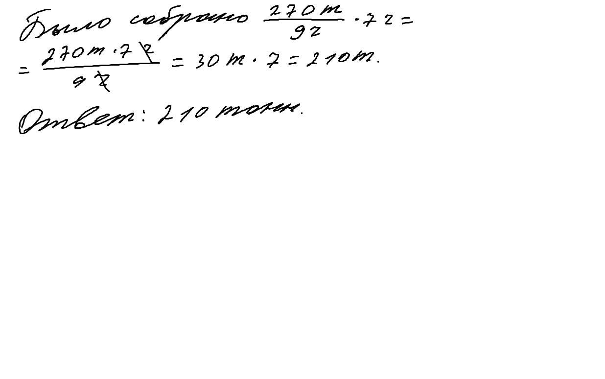 В фермерском хозяйстве собрали 7 из 9 частей от урожая хлопка в 270 т сколько хлопка было собрано