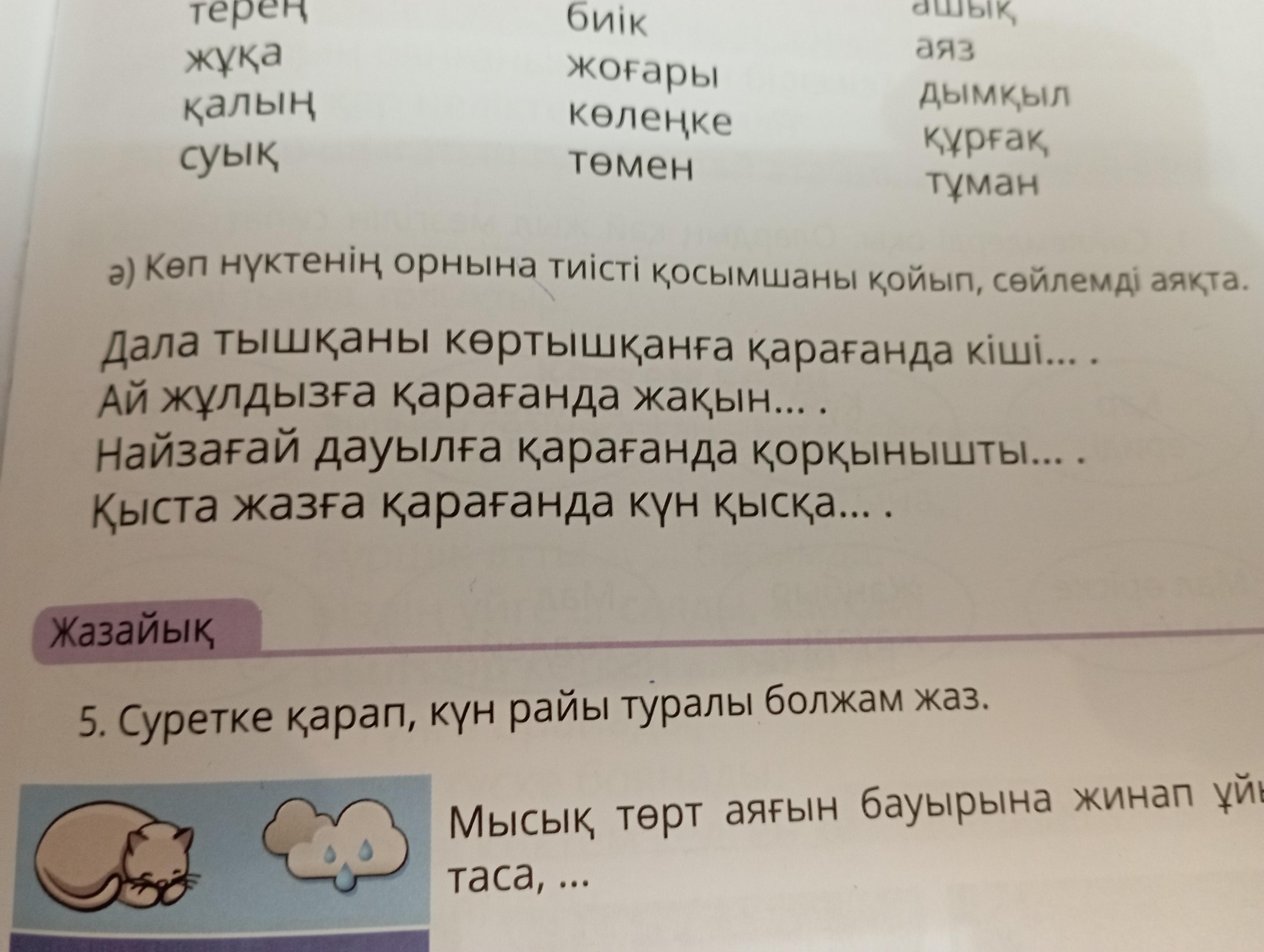Помогите пожалуйста. ә) Көп нүктенің орнына тиісті қосымшаны қойып, сөйлемді аяқта. Дам 15 баллов !!!