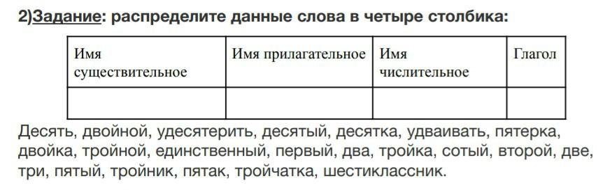 Имя числительнное (сколько? который?): десять, первый, два, второй, десятый, пятый, сотый, две, три.