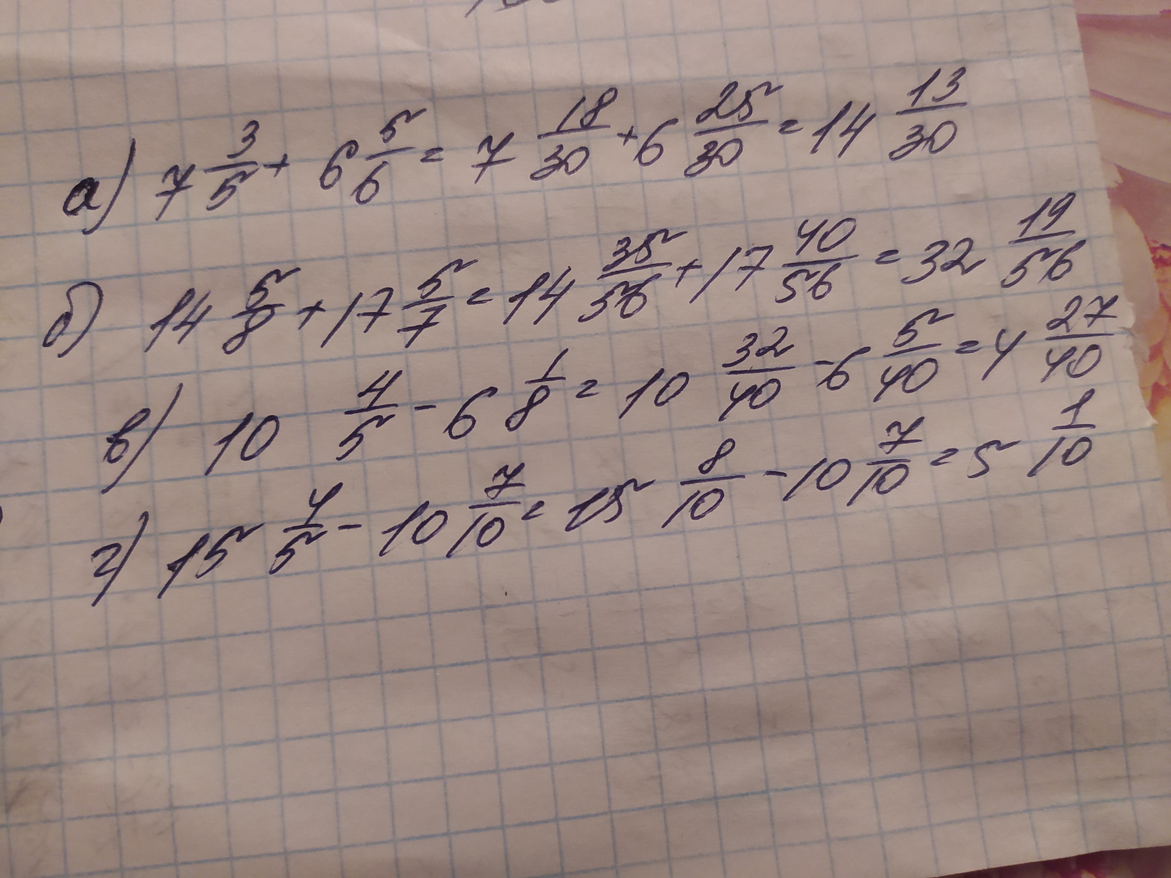 а) 7цілих 3/5+6цілих 5/6 =